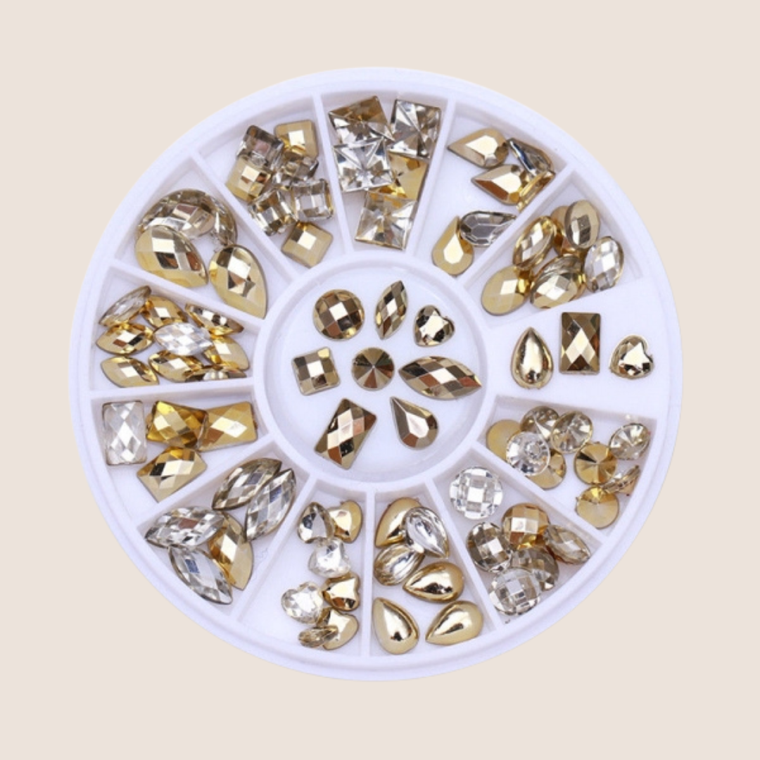 3D Strassrondell Gold, Strass Crystall Nr. 18 von Buschmann Nail Cosmetics – setzen Sie funkelnde Highlights auf Ihre Nägel! Die hochwertigen 3D-Strasssteinchen in Gold und Crystall eignen sich perfekt zur Verzierung von Nagellack- oder Gelsystemen. Mit dem praktischen Rondell lassen sich kreative und präzise Nail Art Designs gestalten, die garantiert alle Blicke auf sich ziehen. Ideal für professionelle Nail Art im Studio oder für individuelle Designs zu Hause.