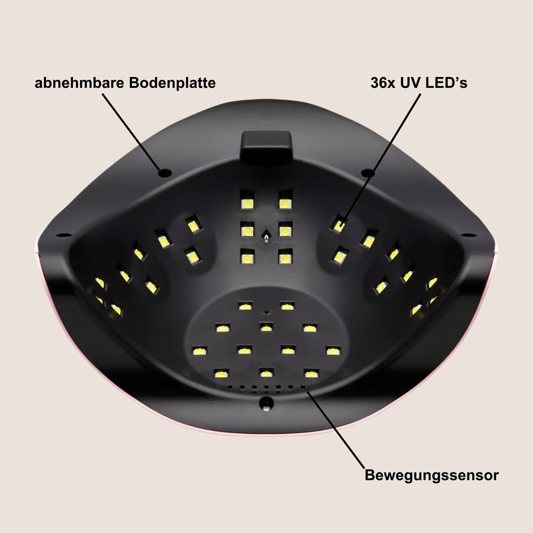 This light curing device is a highlight in every nail salon not only due to its technical superiority, but also due to its attractive design in white and pink.