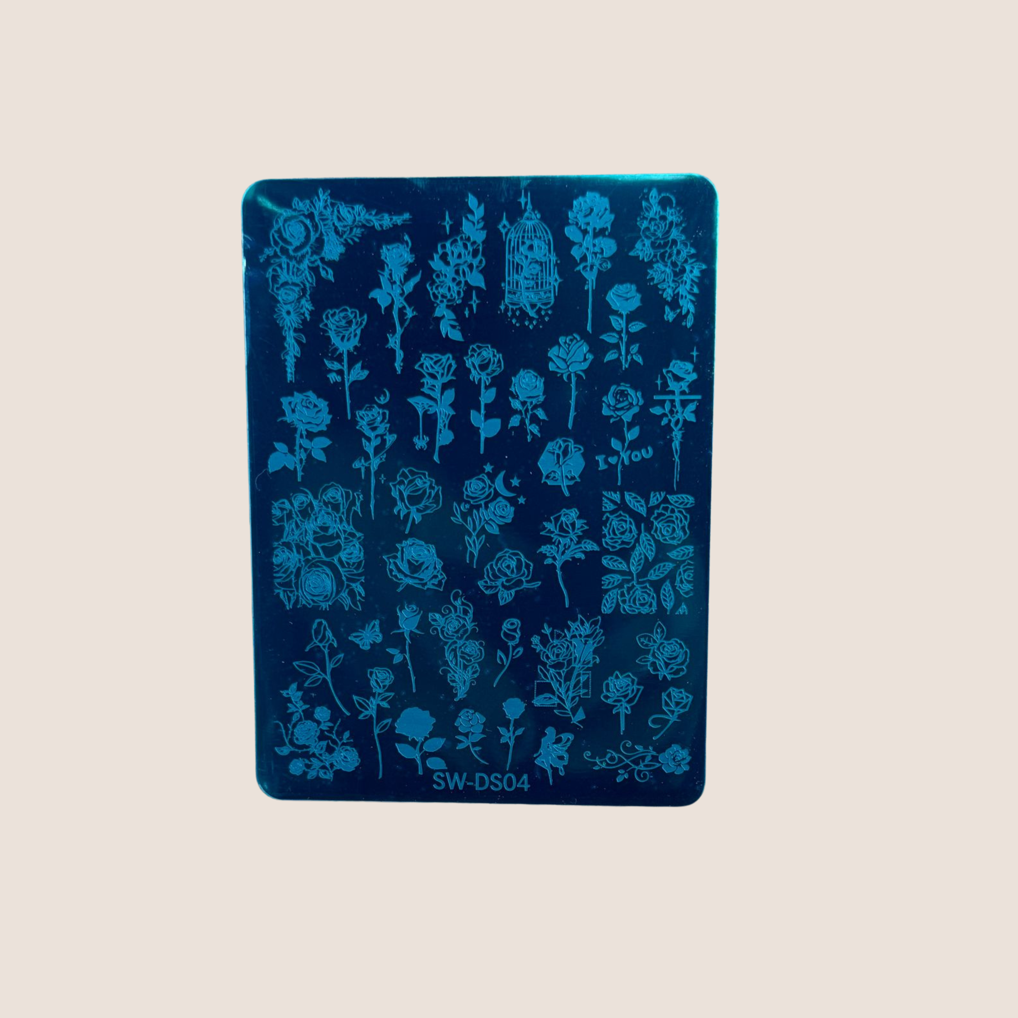 Die BNC Stampingplatte Rose von Buschmann Nail Cosmetics bietet eine Auswahl an filigranen Rosenmotiven und Mustern für kreative und elegante Nageldesigns. Ideal, um stilvolle, florale Akzente auf den Nägeln zu setzen und individuelle Nail Art Looks zu gestalten.